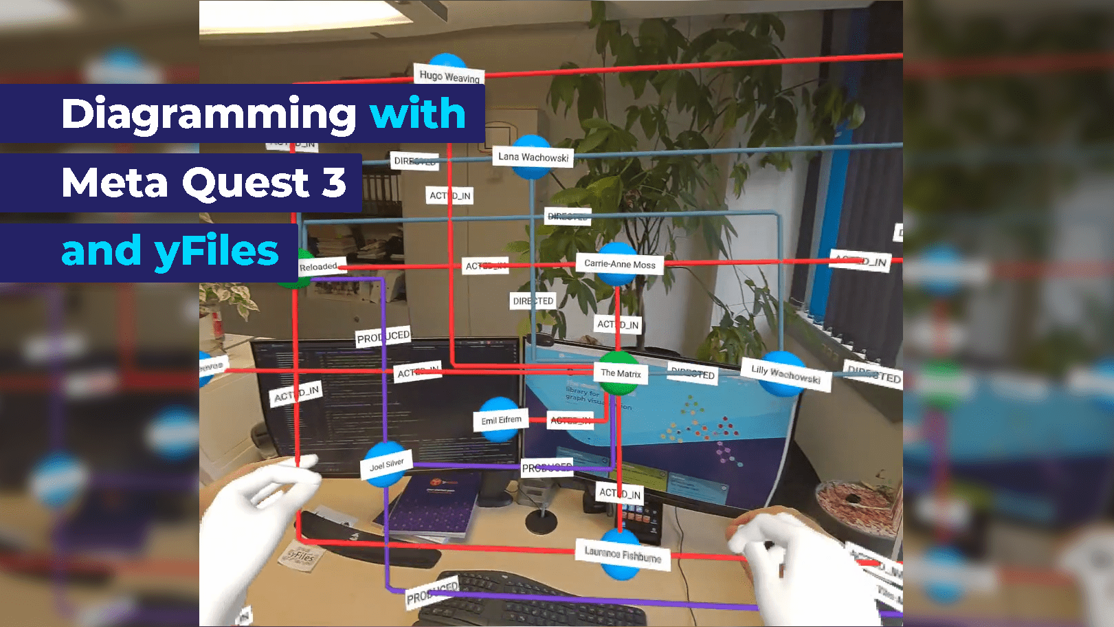 Visualize graphs in augmented and virtual reality using yFiles for HTML together with modern WebXR tooling. The yEd Live VR viewer demonstrates the approach: yFiles computes layouts and geometry which are rendered in a WebXR-capable 3D runtime (A-Frame + three.js). This enables immersive, interactive exploration of complex network data with browser-based access and desktop fallbacks.