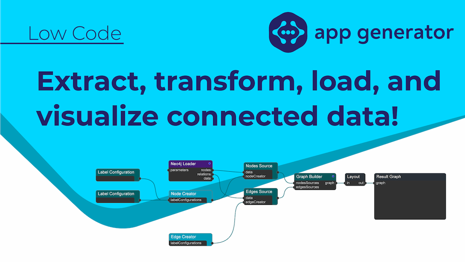 The yFiles App Generator is an ETL tool that lets you rapidly prototype yFiles applications with custom data, styling, and graph layout.